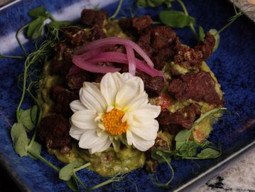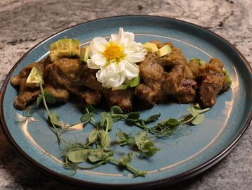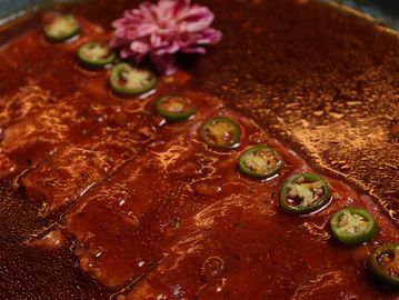 Finos cortes de ribeye (6 oz) servidos con salsa RU de la casa, acompañados de apio, rábano, cebolla morada y aguacate fresco. Incluye tortillas de maíz recién hechas. ¡Un aguachile diferente que vas a querer repetir!