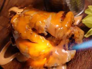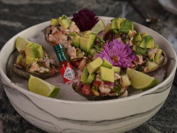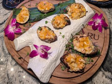 6 ostiones en su concha, bañados en nuestro adobo zarandeado, rellenos de camarón gobernador y queso fundido, todo terminado al Josper para ese toque ahumado inconfundible.
